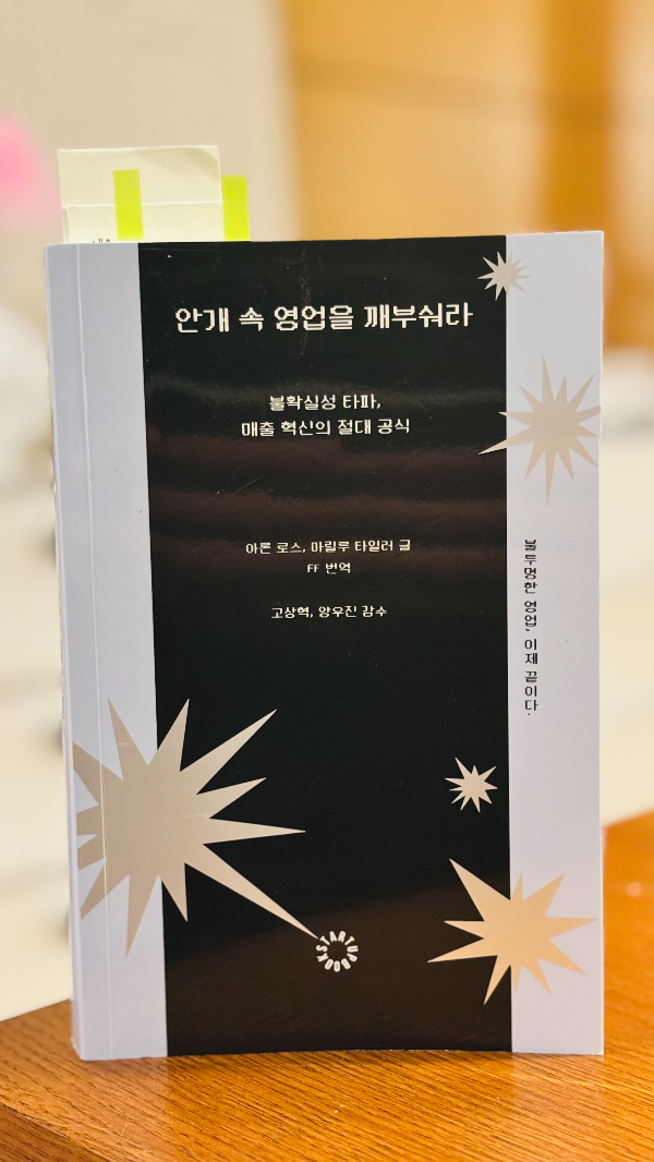 그러던 어느 날, 누군가 올린 포스트에서 이 책을 발견했다. Aaron Ross와 Marylou Tyler의 『Predictable Revenue』. 원제부터 범상치 않았다. '예측 가능한 매출'이라니. 영업에서 가장 불가능해 보이는 단어가 제목이었다. 놀랍게도 한국어판이 있었다. 『안개 속 영업을 깨부숴라』. 번역서를 주문하면서 문득 이런 생각이 들었다. 2011년에 나온 책인데, 왜 2024년이 되어서야 번역되었을까?