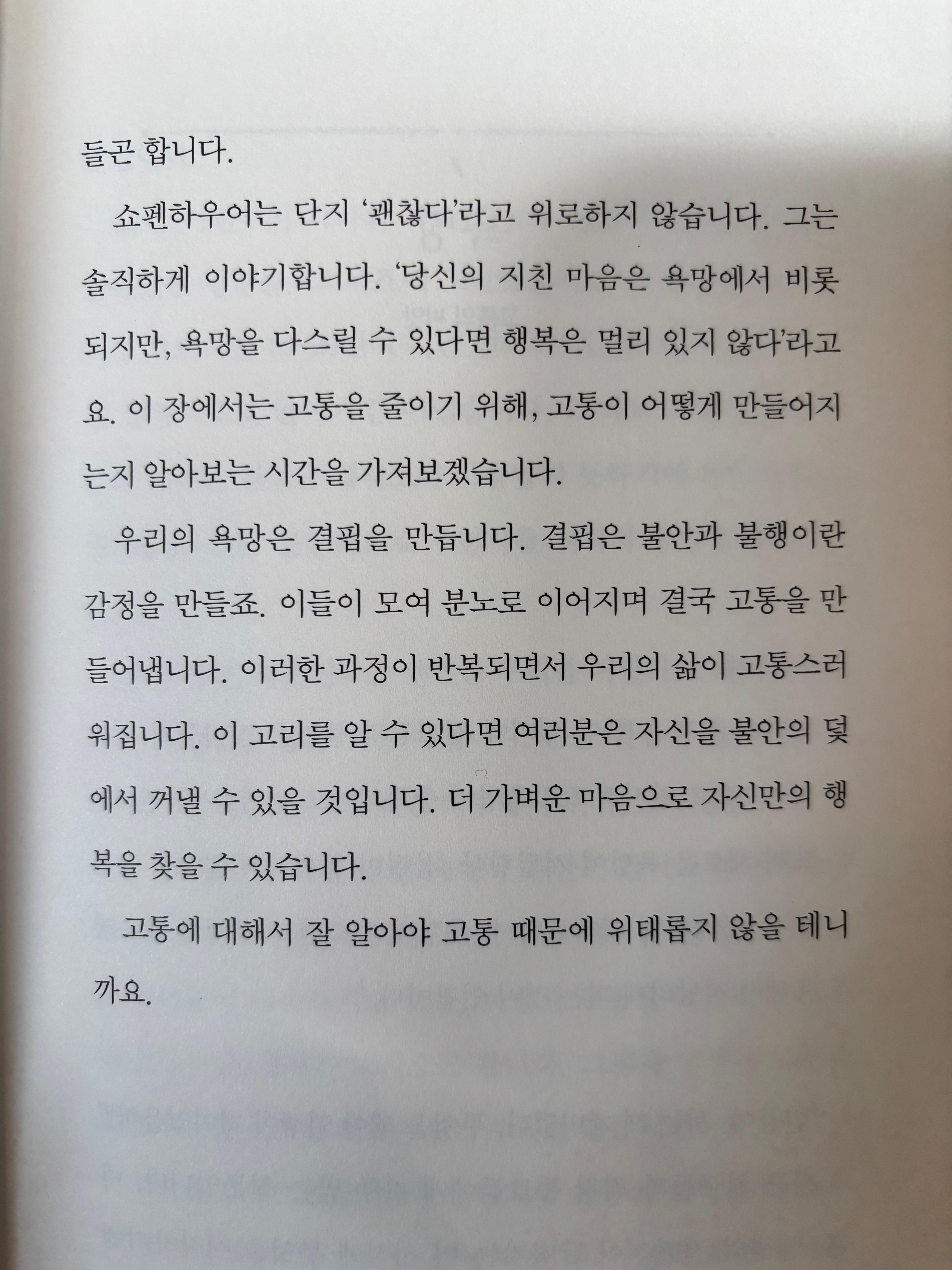 무슨 차이가 있을까? 견딘다는 건 참는 것이다. 이를 악물고 버티는 것 하지만 통과한다는 건 함께 가는 것이다. 우울을 적으로 보지 않고, 지나가야 할 길로 보는 것이다.