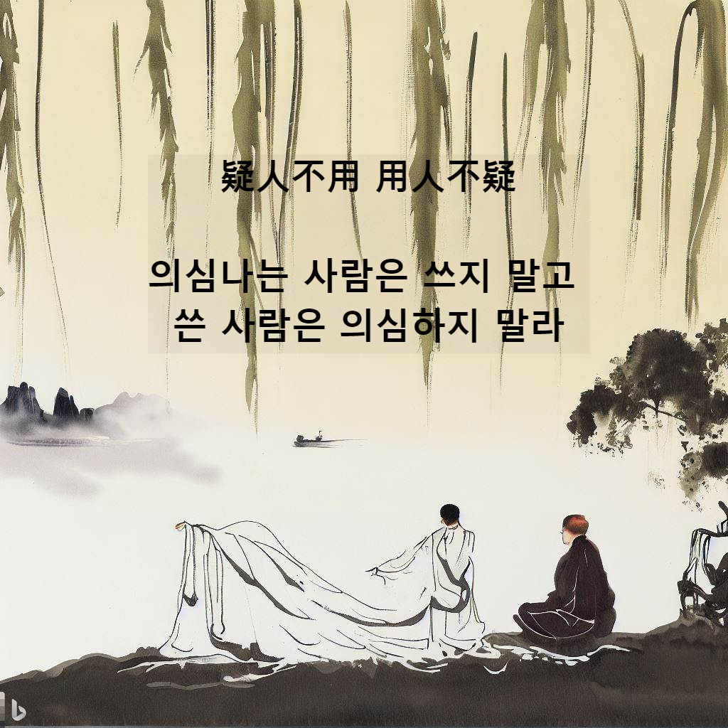 '의심나는 사람은 쓰지 말고 쓴 사람은 의심하지 말라'는 인사에 관한 중요한 원칙이자 인생에 관한 귀중한 교훈이다. 우리는 이 말을 잊지 말고 항상 기억해야 한다.