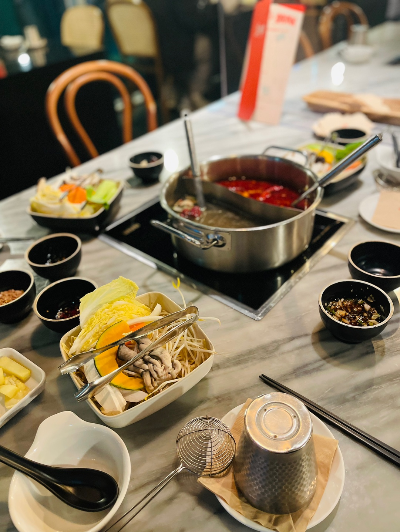 내가 그 좋아하는 훠궈의 홍탕을 떠먹으며