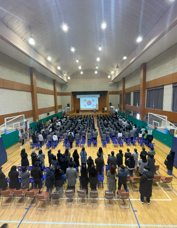 어쨋든 국기를 보고서 있는 모든 학생들이