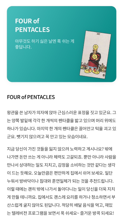 아래는 몇 일전의 타로타드 운세와 그냥 하루 운세이다.