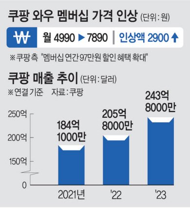 * 오늘의 이슈: 쿠팡 와우 멤버십 가격 58% 인상예고.