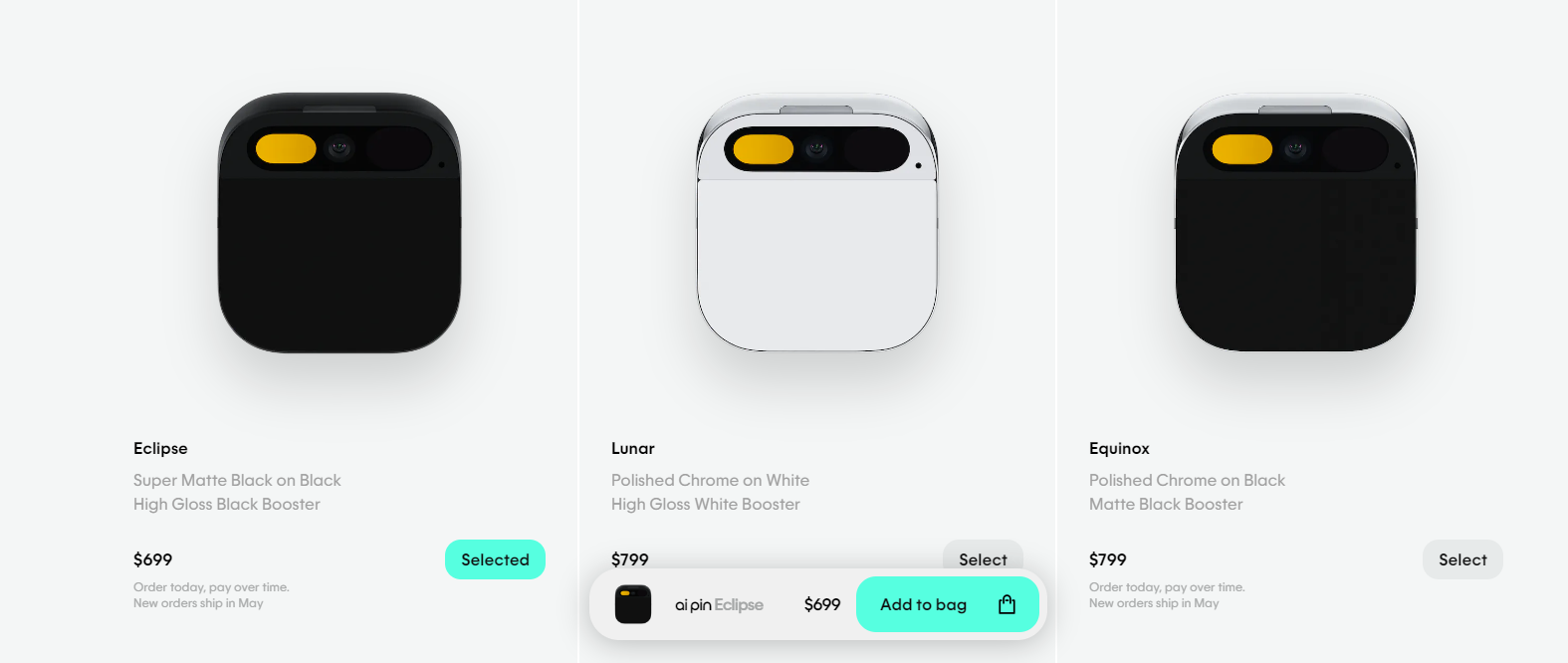 제품명  "Ai Pin"으로 착용 가능한 웨어러블 장치를 설계하고 개발했으며 이 제품은 2024년 4월부터 출하되기 시작했다. 현재 700달러~800달러에 판매되고 있다. Ai Pin은 혁신성을 인정받아 Time Magazine의 2023년 올해의 발명품에 선정되고 MWC 20242에서 상을 받는 등 여러 상을 받았다.