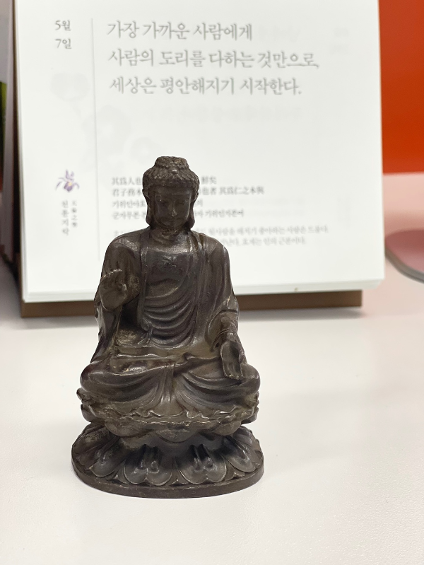 회사에 도착하면 부처님상이 책상 한쪽에 자리잡고 있다.