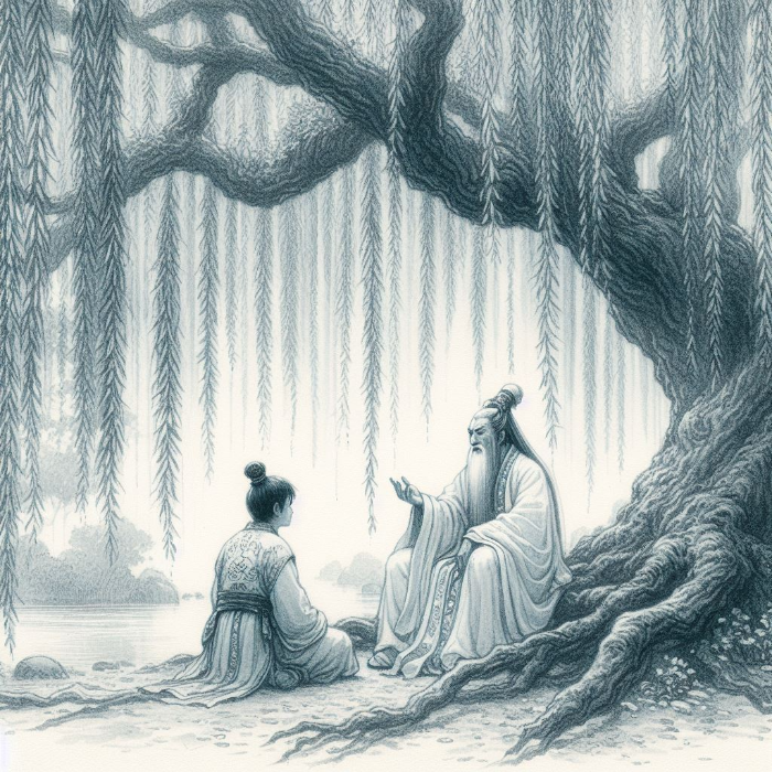 바람에 이리저리 휘날리는 버드나무 가지를 보며 제자가 말했다.