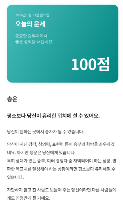오늘아침의 운세는 100점이다.