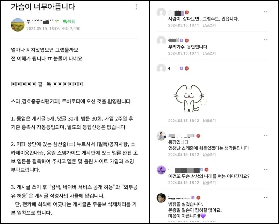 "살다 보면 그럴 수도 있지"... 뺑소니도 소용없는 김호중 팬카페