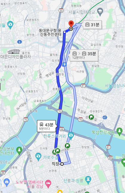 서울숲을 지나 마장동을 지나쳐 경동시장까지 같다.