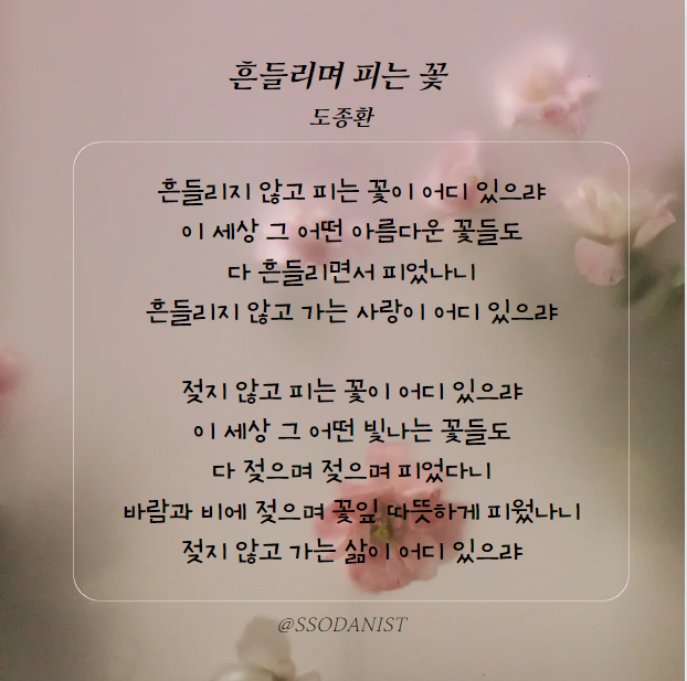 모든 꽃은 바람에 흔들리고 비바람을 이겨내며 결국은 피어낸다.