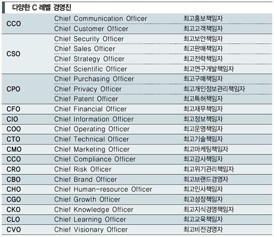 최근 업무중이나 매스컴에서도 기업의 C-레벨이라 불리는 직책을 많이 접할 수 있다.