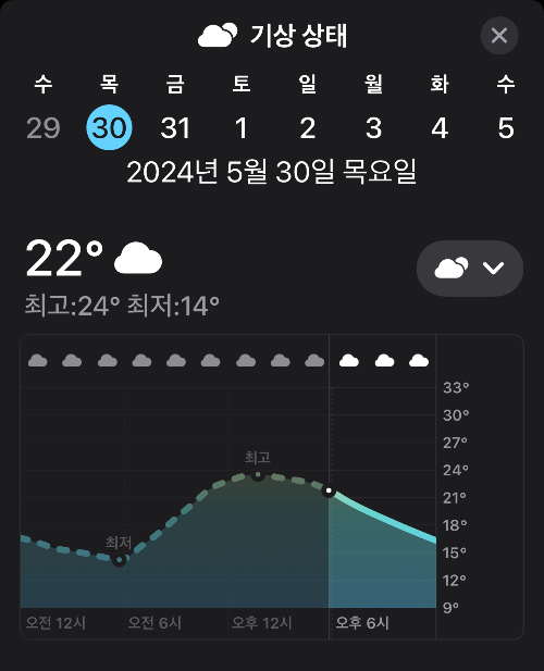 잔뜩 흐려있는데도 최고 기온은 어제보다 조금만 낮아서