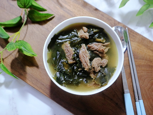 어제 새벽 미역을 불리고 쇠고기의 핏물을 제거해서