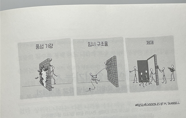 핵심 메세을 강조하는데 품성기량,임시 구조물, 체제이다.