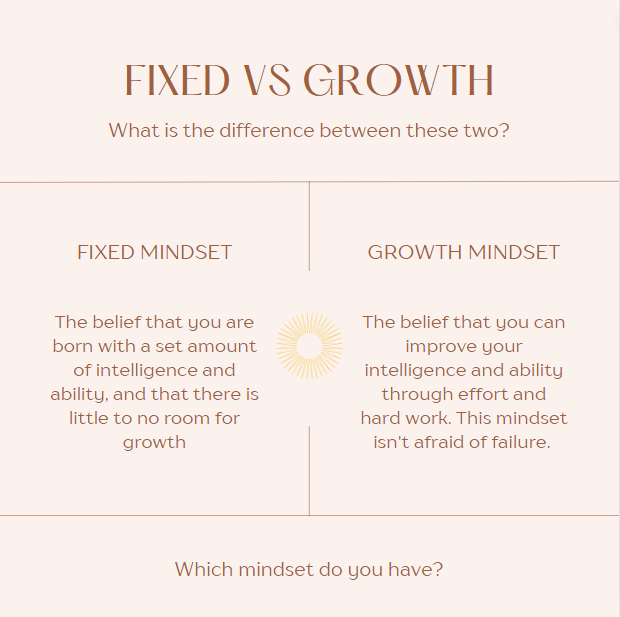 '고정적' 사고방식과 '성장적' 사고방식에 대한 심리학자 캐롤 드웩의 연구는 이 개념을 잘 설명해 준다. 고정된 사고방식을 가진 사람은 자신의 능력과 지능이 고정되어 있다고 믿기 때문에 도전을 피하고 쉽게 포기하는 반면 성장 마인드를 가진 사람은 자신의 능력은 노력과 학습을 통해 발전할 수 있다고 믿는다. 이러한 근본적인 태도 변화는 사람들이 장애물이나 좌절 그리고 기회에 접근하는 방식을 변화시키는 것이다.