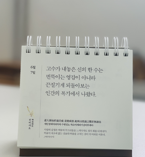 명언 달력은 어제 것 까지 두장을 넘겼다.