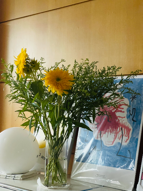 집에 들어오기 전 꽃을 한 다발 사 왔다.