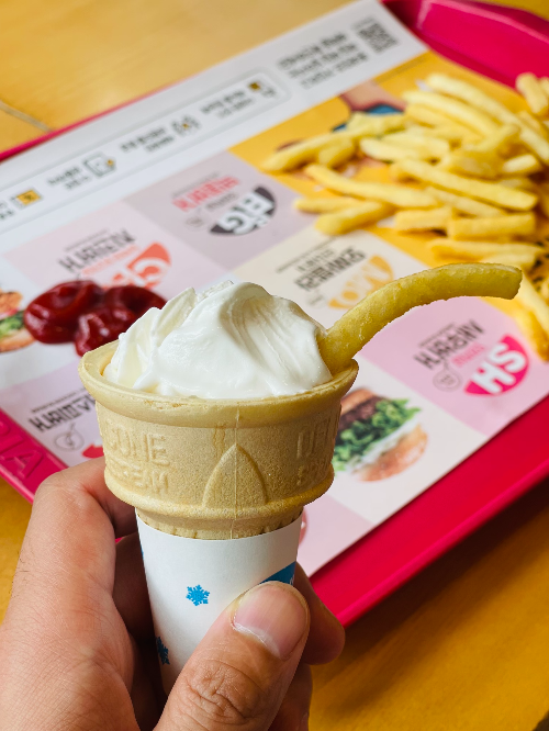 롯데리아에 들러 소프트콘과 프랜치프라이를 함께 주문했다.