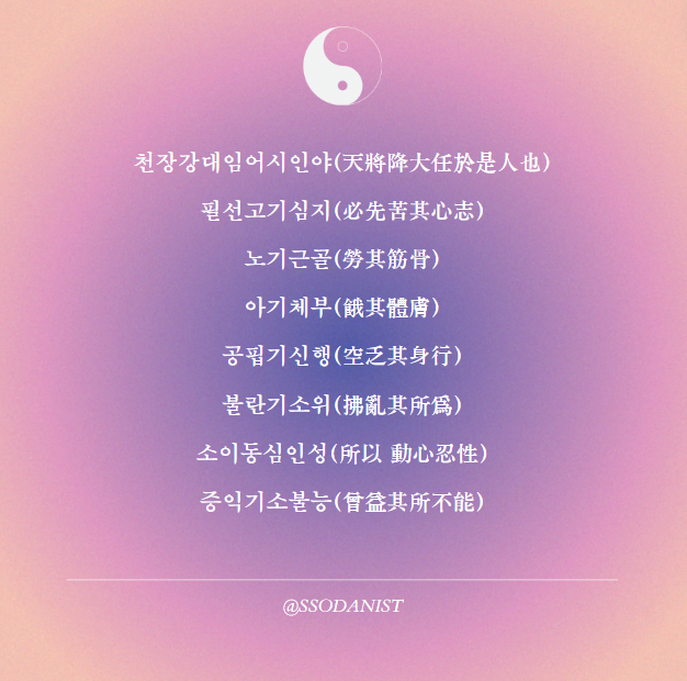 위 맹자의 말처럼 하늘이 우리에게 큰 일을 주기 전에
