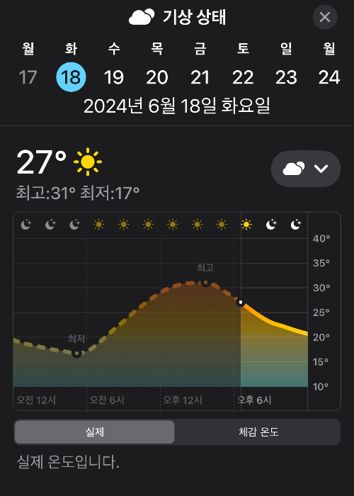 최고 기온은 매일 조금씩 우상향 하고 있다.