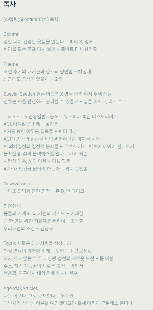 스켑틱은 이처럼 주제하나하나가 참 많은 생각을 하게 만드는