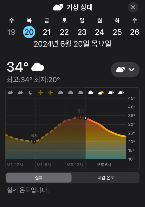 월요일 30도로 시작한 낮 최고 기온은 오늘 34도까지 올라갔다.