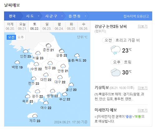 예보상 강원도 일부 지역을 제외하고 비가 온다고 하니