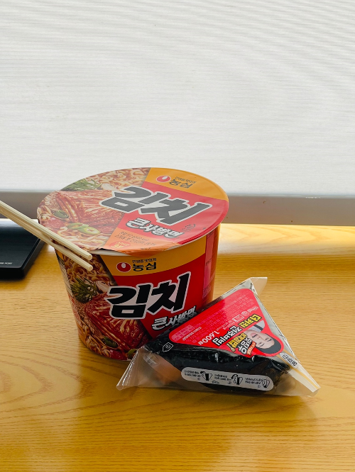컵라면과 삼각김밥을 하나씩 사 먹었는데