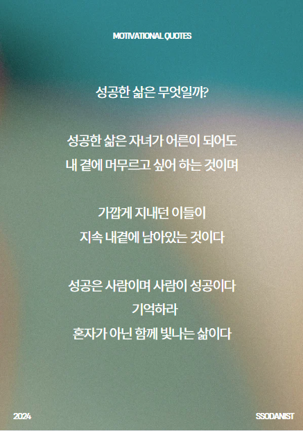 | 인생에 정답은 없다. 80억 개의 성공이 있을뿐 (0) | 2024.06.25 |