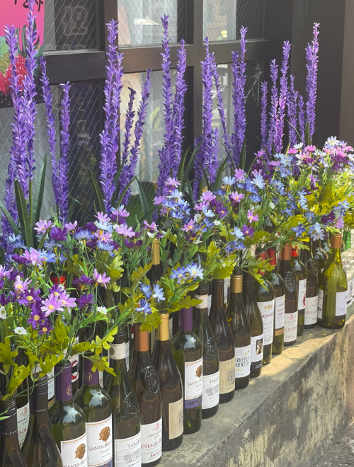 오고 가는 길에 빈 와인병을 예쁘게 늘어놓은 매장도 보고