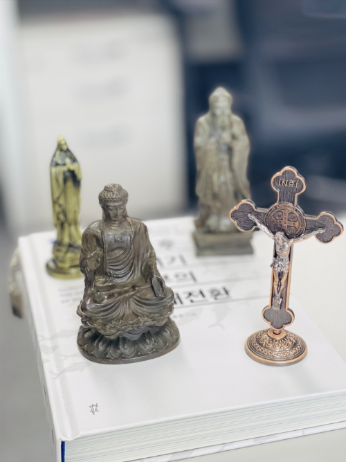 책상 위의 4명의 각 종교 성인들께서는 여전히 그 자리를 잘 키키고 있다.