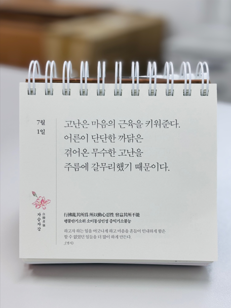 다산 어른의 하루의 7월 말씀은 자승자강 (自勝者强 )이다.