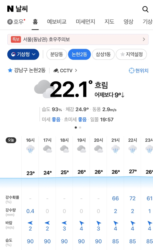 저녁시간이 되었는데도 여전히 오락가락 비가 오고 있다.