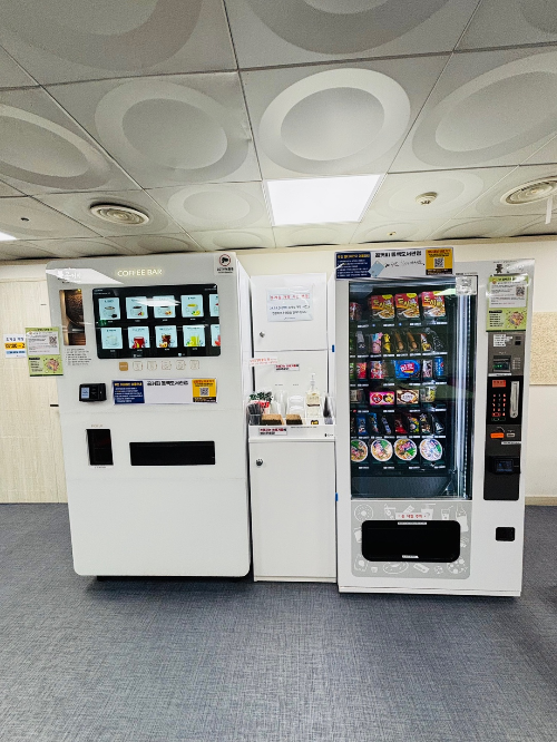 커피랑 스낵 밴딩머신이 잘 구비되어 있었다.
