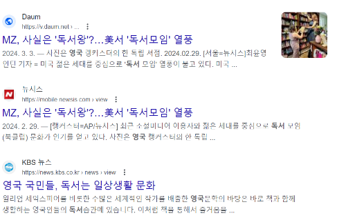 외국의 젊은 층들이 독서에 열을 올리고 있다는 기사를 얼마 전 접했는데