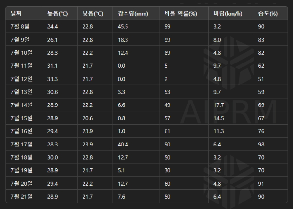 GPT에게 물어 보니 향후 2주간은 이틀 정도를 제외하고는 지속 비가 올 것 같기는 하다.