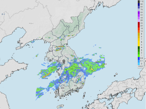 장마 전선이 반도의 허리 아랫부분에 벨트처럼 딱 걸려있다.