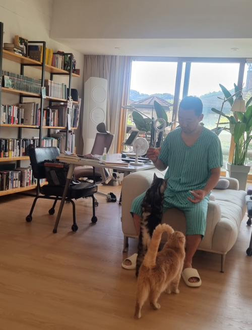 여전히 아침에 일어나면 고양이들이 반긴다.