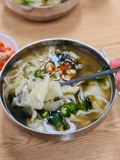 그 상가에 입맛에 꼭 맞는 수제비 집이 있다.