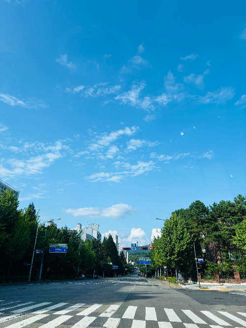 날씨는 정말 더운데 차 안에서 보는 하늘은 충분히 아름답다.