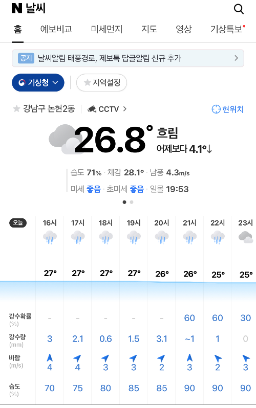 이렇게 서울 경기는 여전히 장마의 중심에 들어가지 않은 느낌이었다.