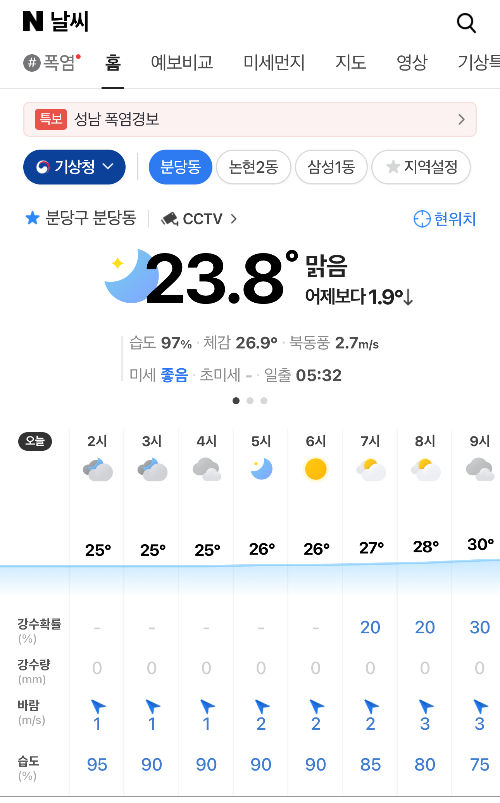한국은 비가 내리고 그쳐서 깨끗히게 습한 분위기다