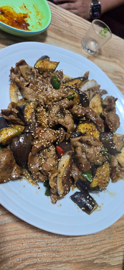 오늘은 추천을 받아 가지불백과 갑오징어 무침을 시켰는데