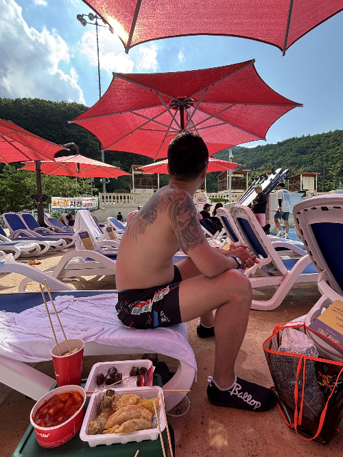 풀장 내에 먹거리가 많은데 손님이 많으니