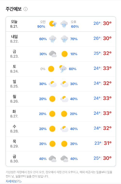 낮 최고 기온이 최대 4도 정도는 떨어질 것이라는 예보다.