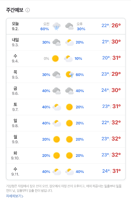 늦여름 초가을의 날씨가 서서히 시작될 것이다.