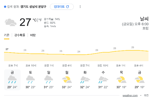 예보를 보니 다음 주에도 여전히 낯에는 30도를 넘어서는데