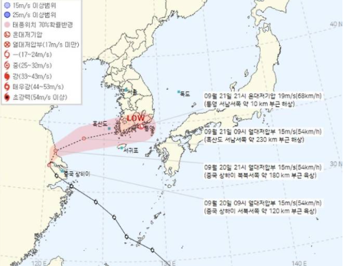 경로를 급 한국으로 90도 틀어 다가오고 있다.