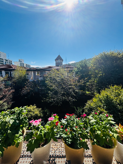 꽃을 몇 개 심었다고 분위기가 화사하다.