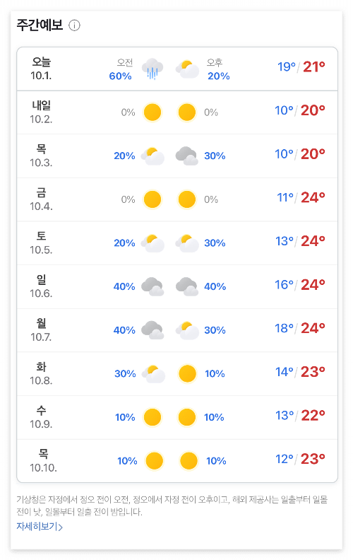 오늘도 최저 기온이 10도까지 떨어진다고 한다.